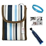.../ Durable Protective Camera Carrying Case (Blue Rainbow Colored Stripes) for All Sony CyberShot DSC Digital Camera Model + Universal Clear Screen Protector + Blue 6-inch Mini Tripod Stand with Flexible Grip Legs + SumacLife TM Wisdom Courage Wristband / Nylon Leg
